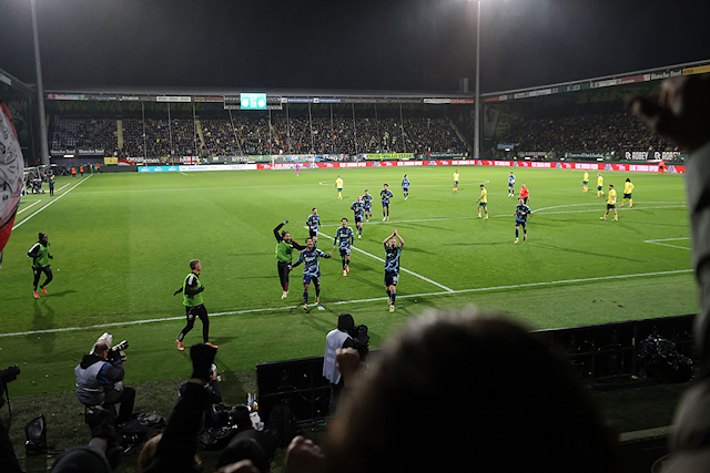 Tussen Amsterdam en Sittard zit grofweg zo’n 187 kilometer. Toch reisden achthonderd trouwe supporters hun club ook zaterdag weer achterna voor het uitduel met Fortuna Sittard (1-3). Eindelijk viel er weer eens een overwinning te vieren in het uitvak. Onze fotograaf schoot plaatjes.