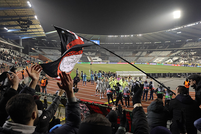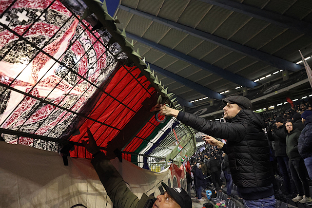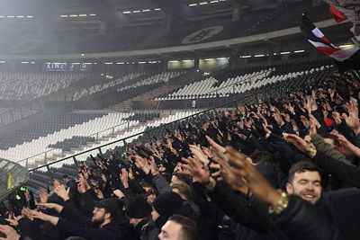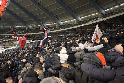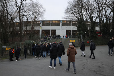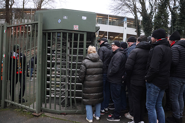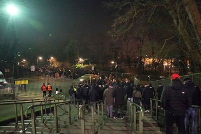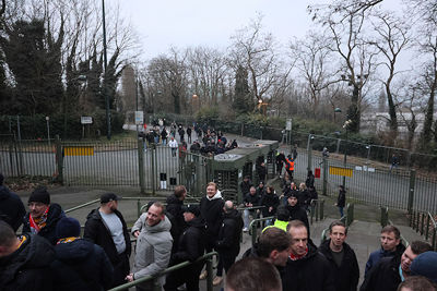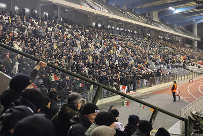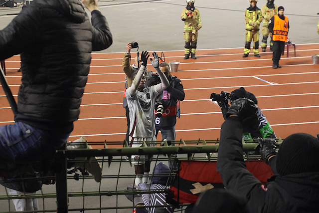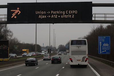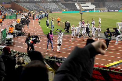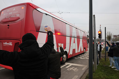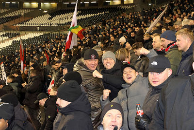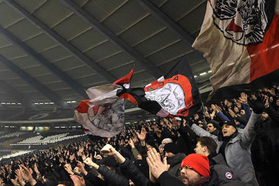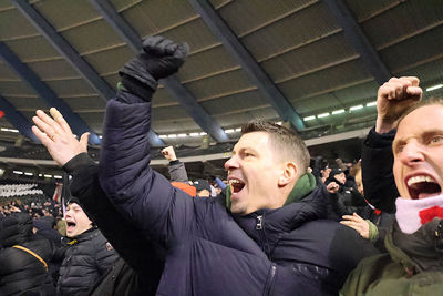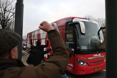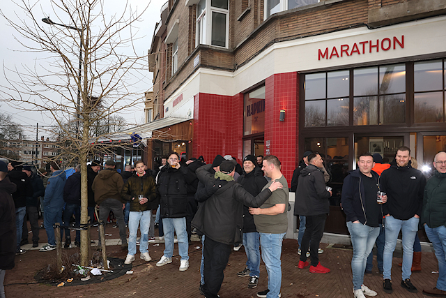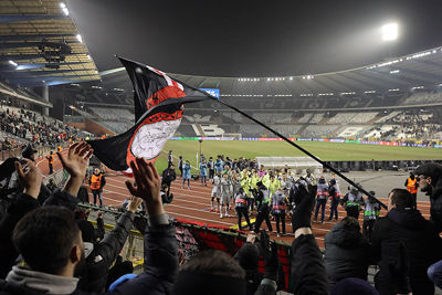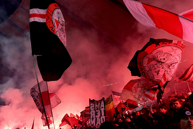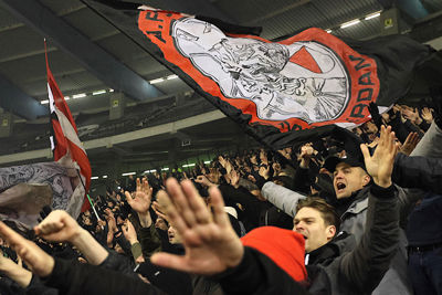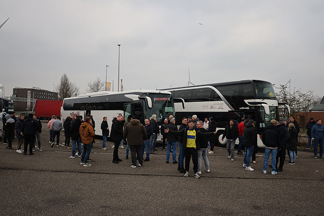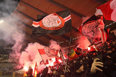 Maar liefst 2300 Ajacieden bevolkten donderdag het uitvak van het Koning Boudewijnstadion. Zij kwamen met de auto of pakten een van de tien handige SV Ajax-bussen. Overigens zagen we ook flink wat Ajacieden op de thuisvakken zitten in het amper voor de helft gevulde stadion.