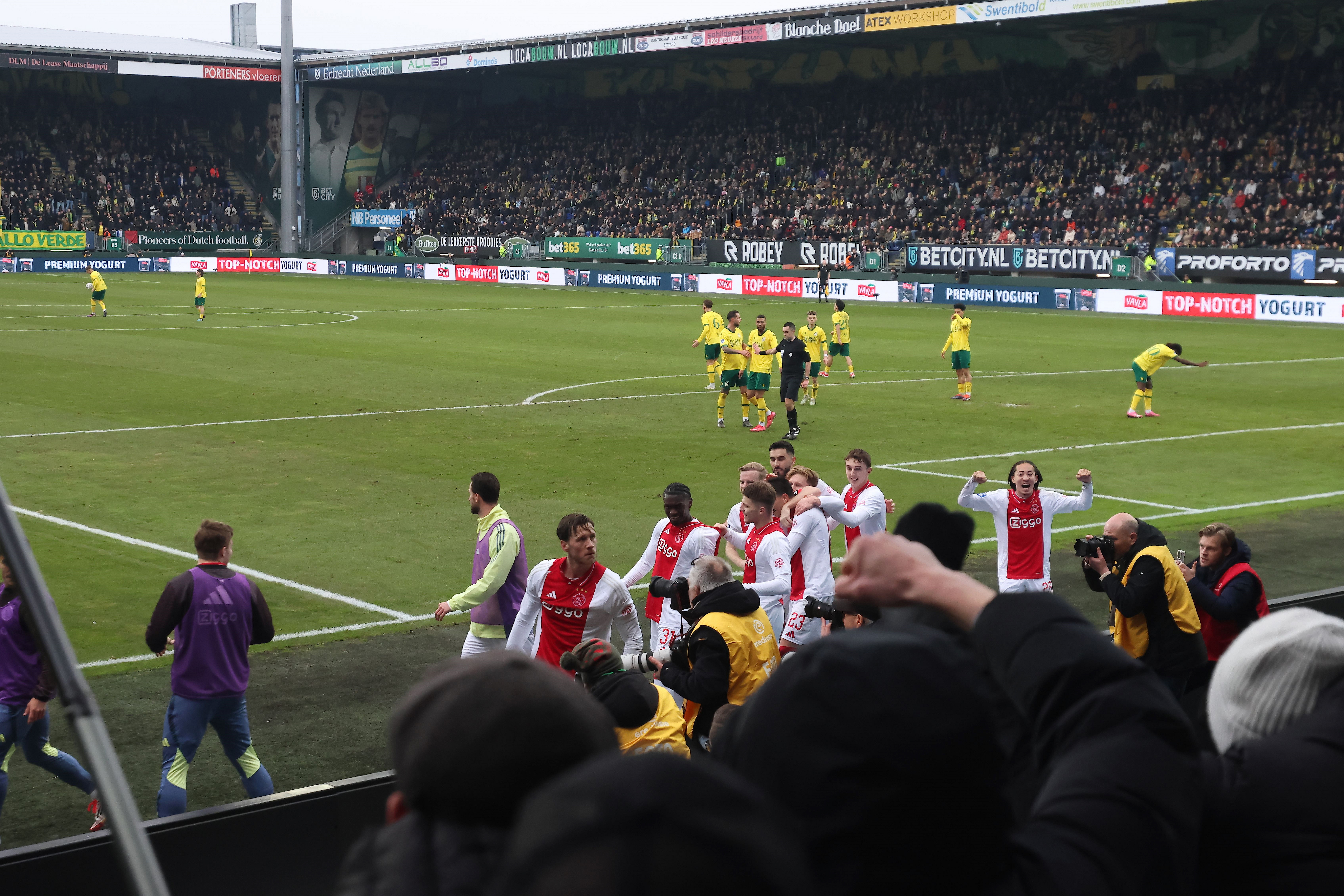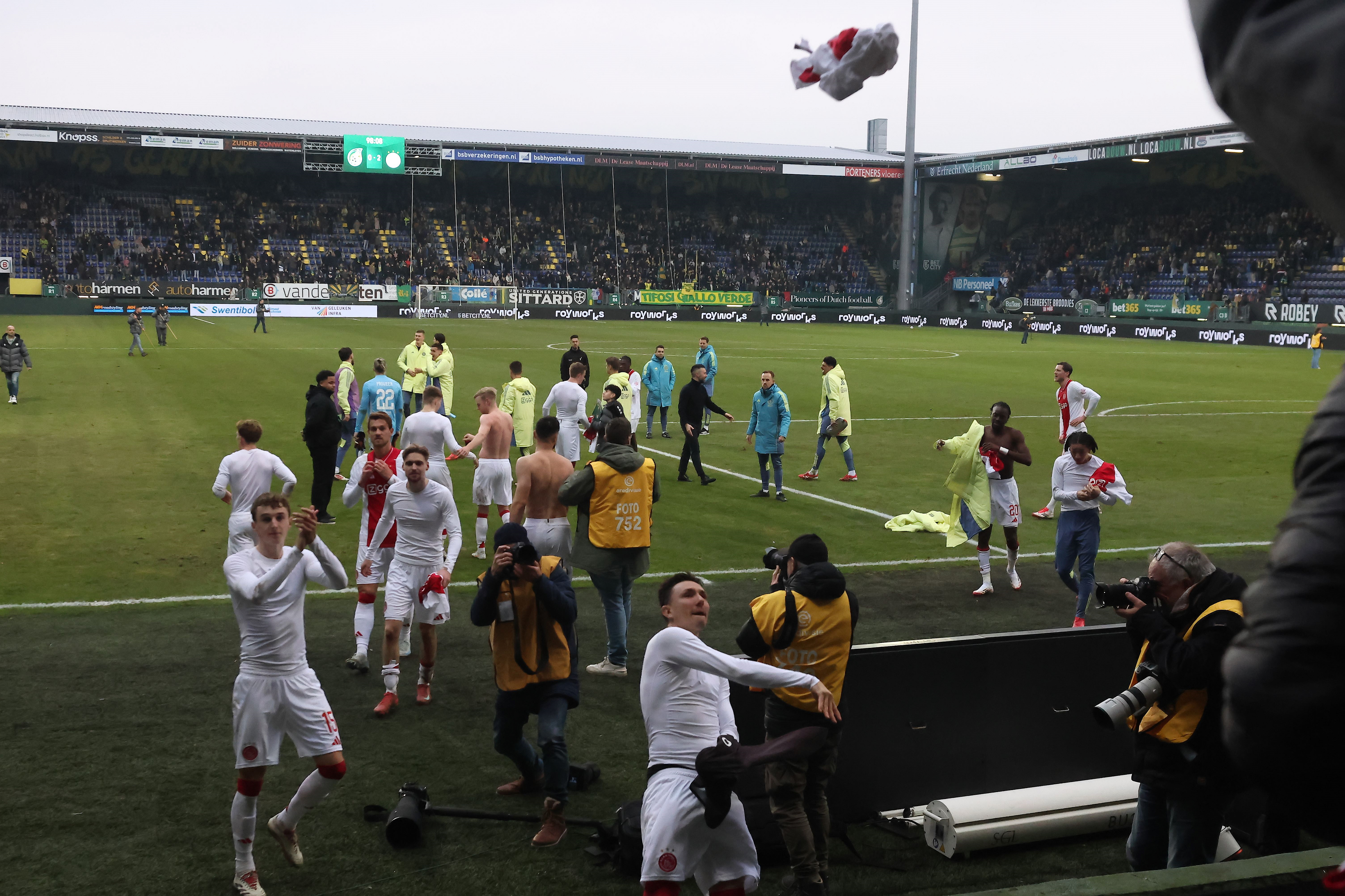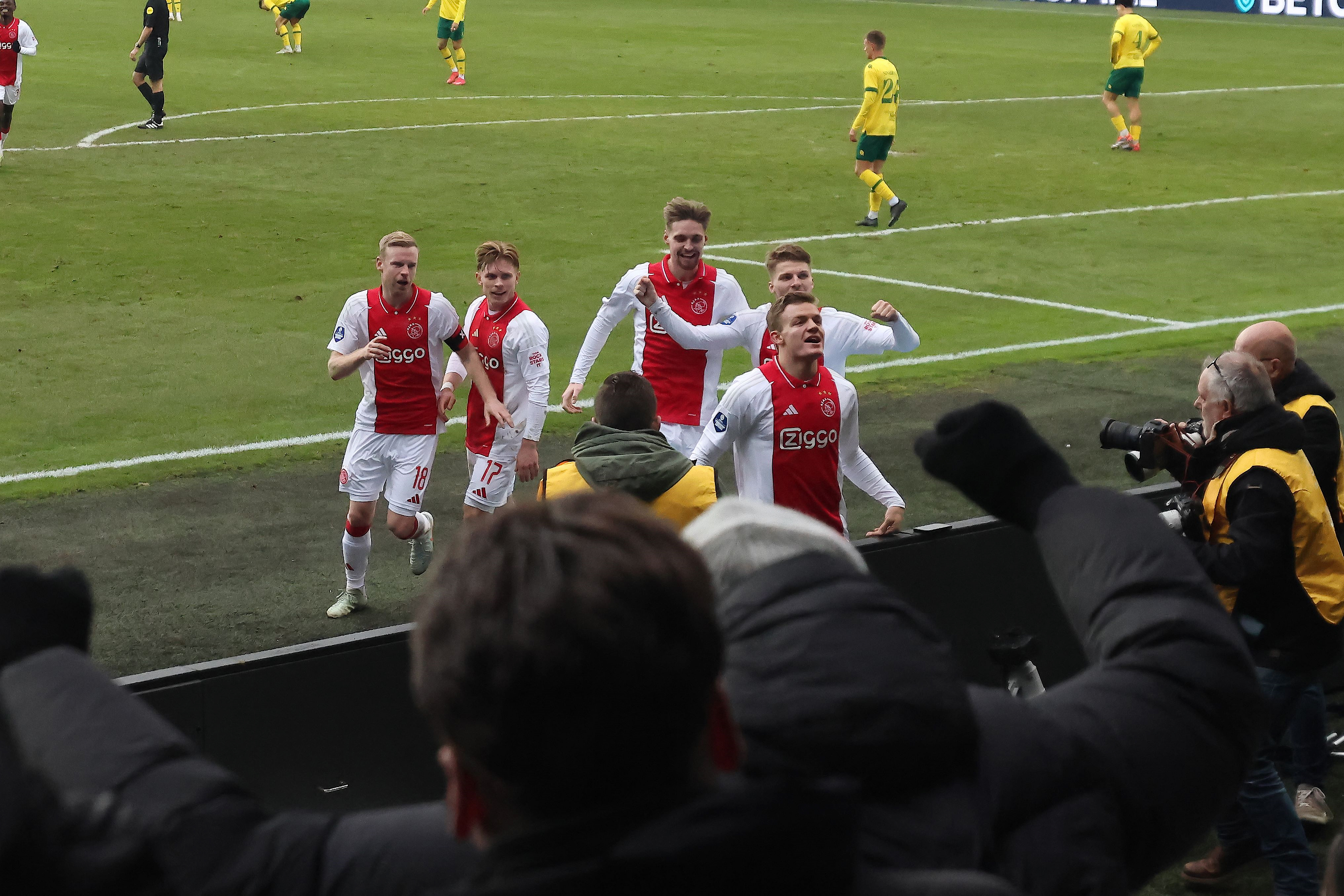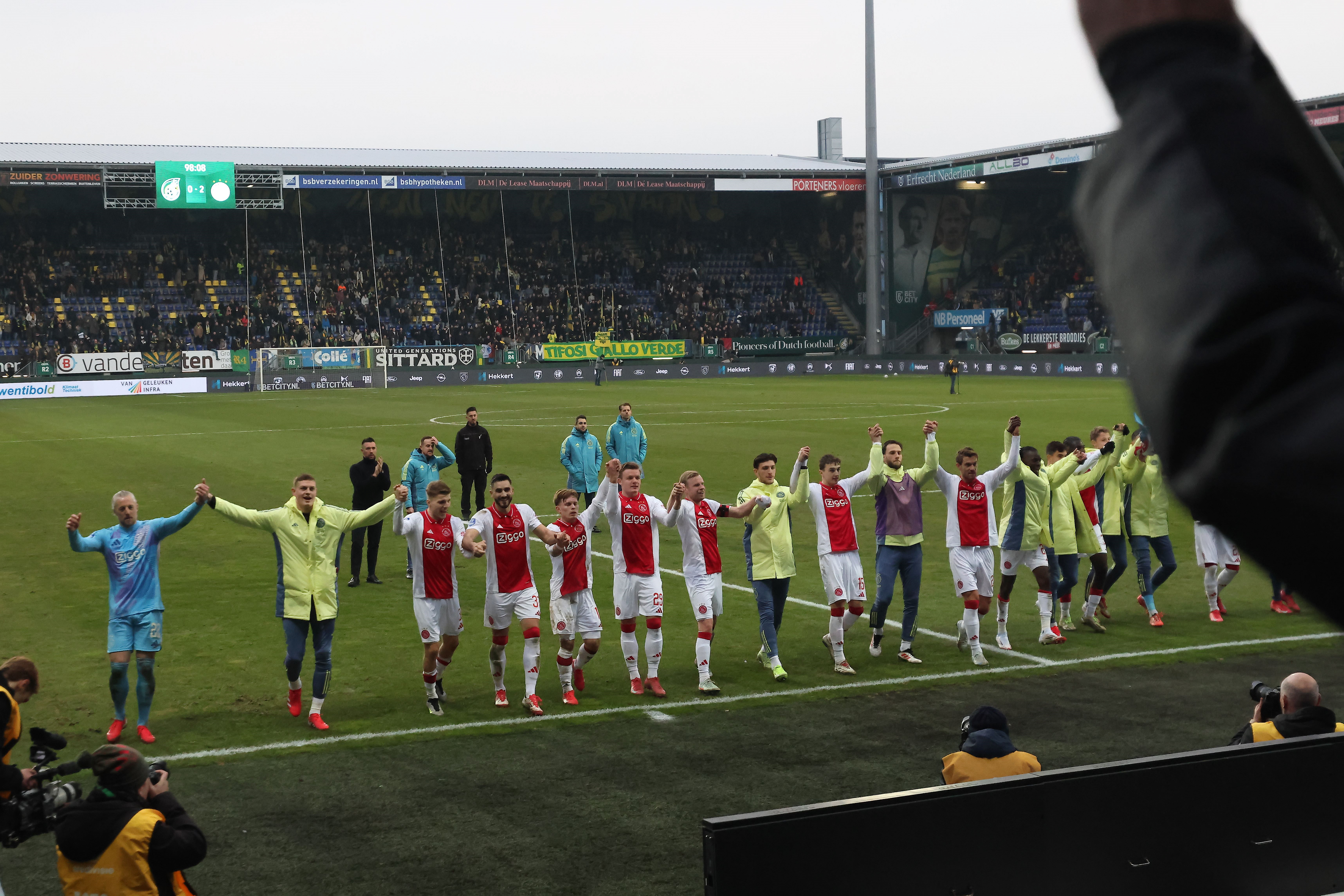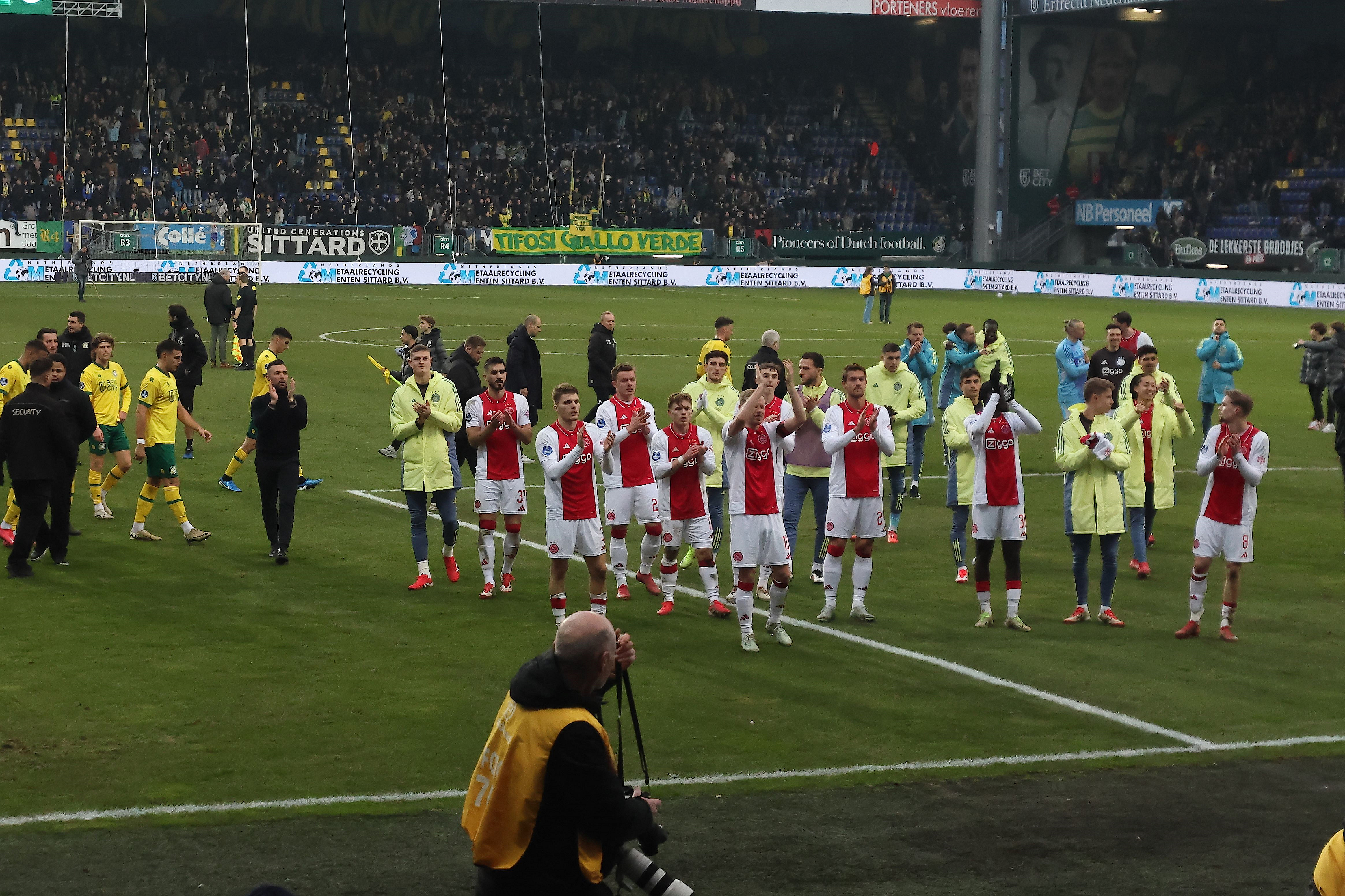 De druiven waren zuur op veel plaatsen in Nederland, maar feit is dat Ajax eindelijk weer de ranglijst aanvoert. Dat speelden de Ajacieden klaar door op een festivalterrein met 2-0 van Fortuna Sittard te winnen. Wout Weghorst was belangrijk met zijn invalbeurt. Christian Rasmussen zorgde voor de kers op de taart.