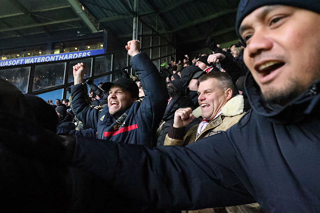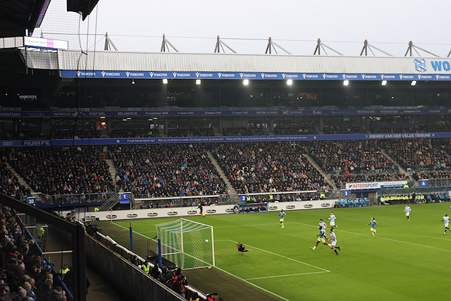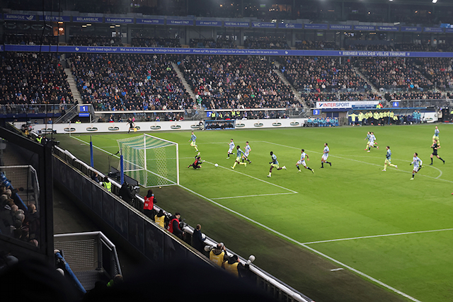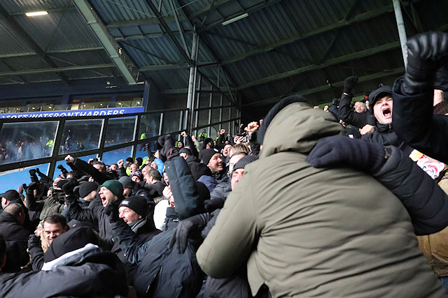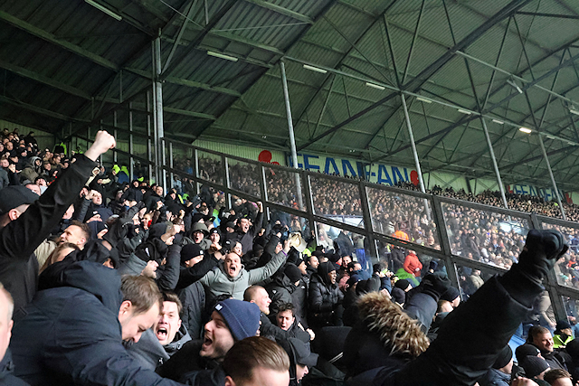 In het steenkoude Heerenveen was het letterlijk bibberen, maar dankzij de prestaties op het veld kon het volle uitvak zich lekker warm juichen. Onze fotograaf De Brouwer stond als altijd tussen de supporters en schoot weer fijne plaatjes.