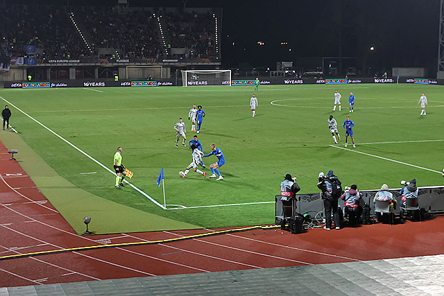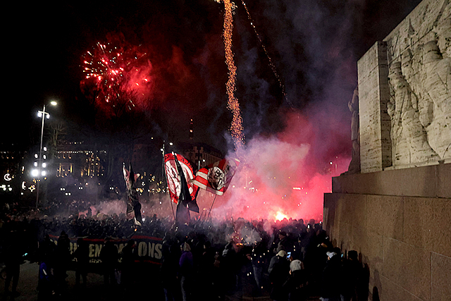 Daarbij werd veel vuurwerk werd de lucht in geschoten, maar helaas was er van vuurwerk drie kilometer verderop in het Daugavastadion nooit sprake. Ajax speelde een onvervalste zaadpot en verloor met 1-0. De ploeg bakte er werkelijk geen pepernoot van en kreeg dat na afloop ook vanuit het uitvak te horen.