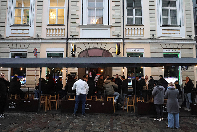 Het oude centrum van Riga is niet zo groot, dus kwamen alle bekende koppen elkaar weer tegen. Je kon elkaar bijna niet missen. Het was vooral kroeghoppen, want binnen stonden de kachels aan en de tap open. Ook niet onbelangrijk.
