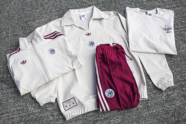 Vanzelfsprekend vinden we het klassieke Ajaxlogo terug op alle kledingstukken. Dat geldt ook voor het oude logo van Adidas, de zogeheten trefoil. Dat zijn inderdaad iconen, dus de naam van de collectie snappen we wel.