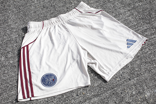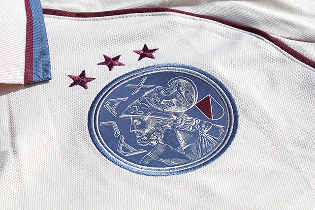 Natuurlijk prijkt het teruggekeerde klassieke Ajaxlogo op zowel het shirt als de broek. Het logo vinden we terug op een marineblauwe badge, met daarboven de drie traditionele sterren in bordeauxrood. De letters van Ziggo en het Adidaslogo zijn eveneens marineblauw, terwijl de overige details en de rugnummers juist weer bordeauxrood van kleur zijn.