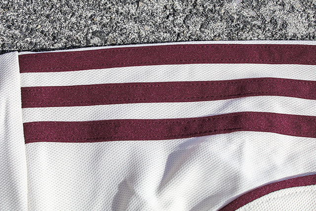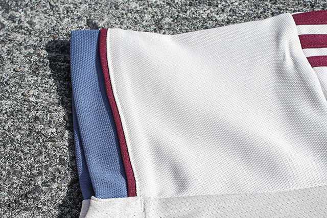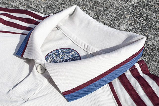 Het derde shirt – dat dus de stichting van Amsterdam viert – oogt wat ons betreft lekker strak. We zien een elegant en volledig beige tenue met marineblauwe en bordeauxrode accenten. Hoog tijd om in te zoomen op de details, wat ons betreft.
