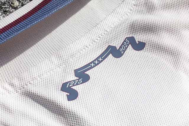 In de hals zien we een moderne weergave van de oudste stadszegel van Amsterdam. Het derde shirt is – net als de thuis- en uitshirts – voorzien van een vaandel in de nek met daarop het oprichtingsjaar 1275 van Amsterdam, het jubileumjaar 2025 en de drie Amsterdamse andreaskruisen.