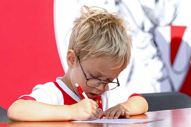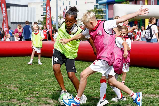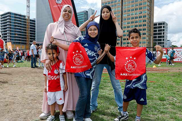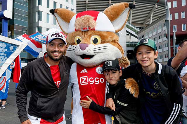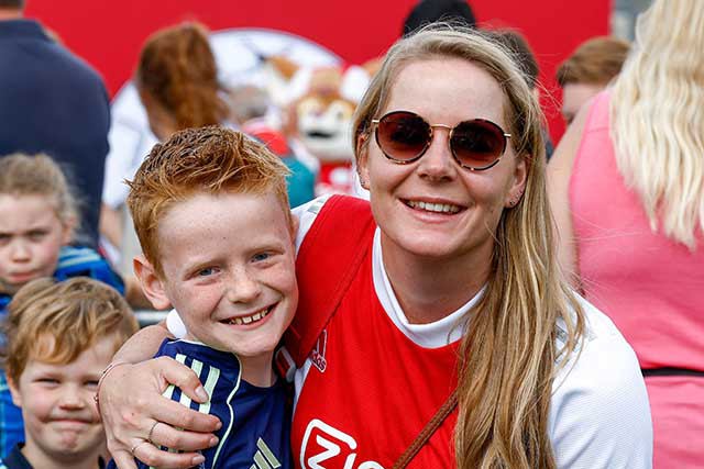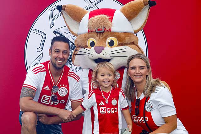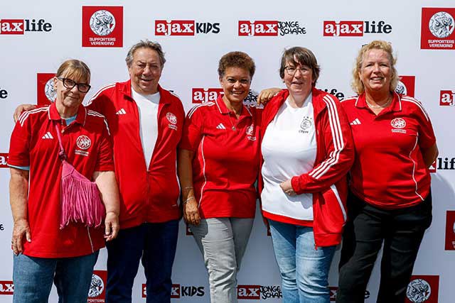 We zagen een ware optocht van de meest uiteenlopende Ajaxshirts door de jaren heen. En wat we ook mooi vonden: het klassieke Ajaxlogo keert op steeds meer plekken terug. Dat zie je goed terug op de foto’s. Natuurlijk waren wij van Supportersvereniging Ajax ook present met leuke voetbalspellen voor kinderen, terwijl Lucky met iedereen op de foto ging.