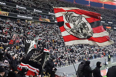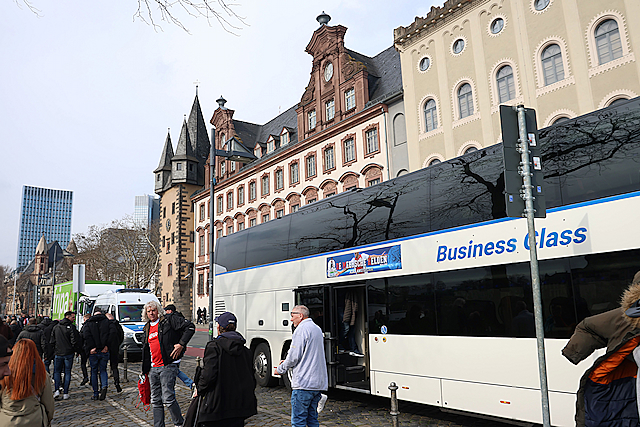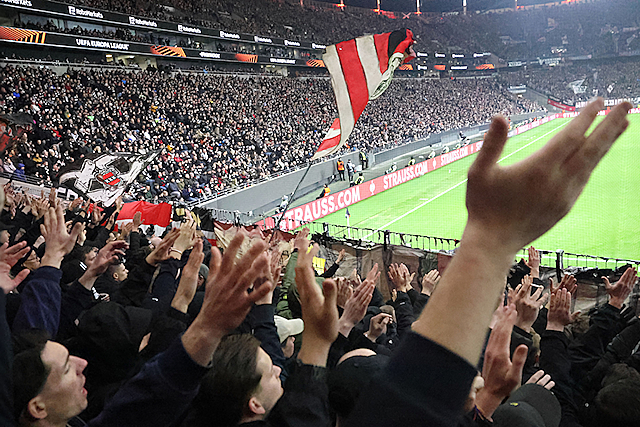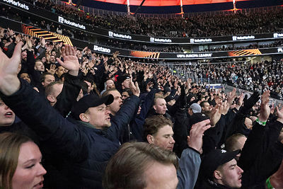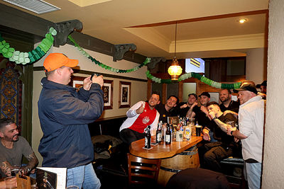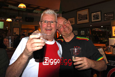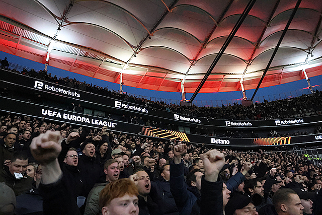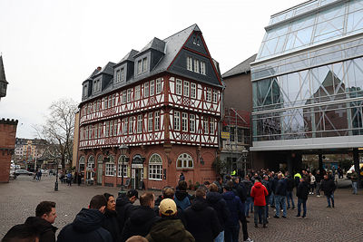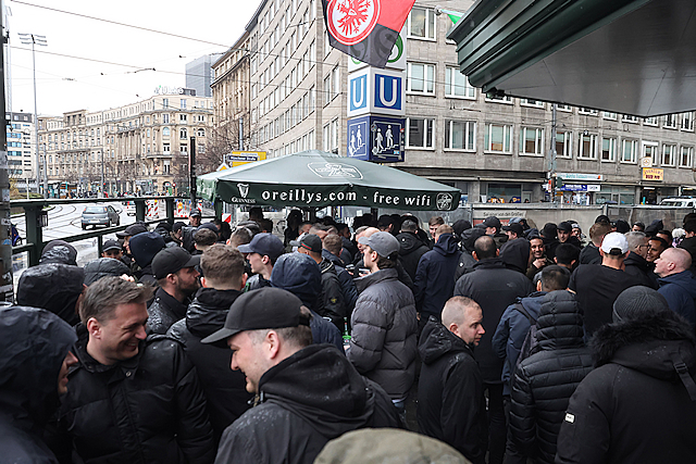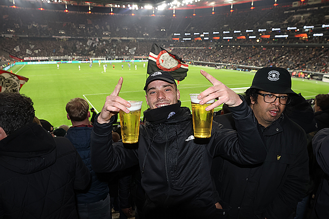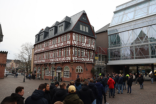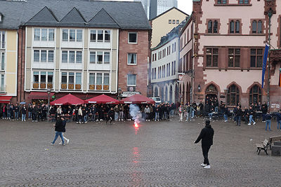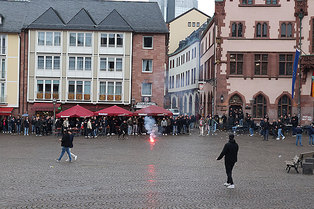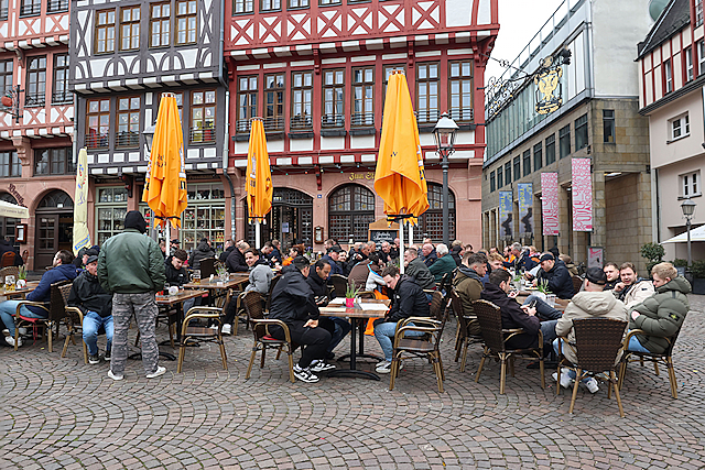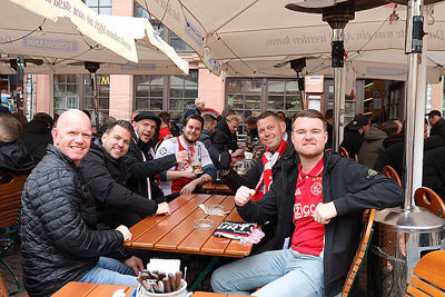 Supporters vermaakten zich op de wedstrijddag van Eintracht Frankfurt - Ajax (4-1) uitstekend in het centrum van Frankfurt am Main. Dat blijkt wel uit de foto’s die De Brouwer door de dag heen schoot.
