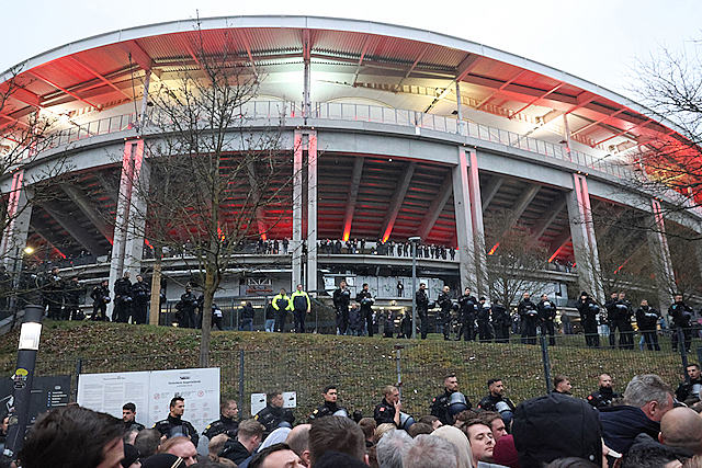We spraken door de dag heen talloze Ajacieden in de stad. Een veel gehoorde mening onder de aanhang: de return tegen Eintracht Frankfurt is belangrijk, maar zondag is echt véél belangrijker. Het jubileumduel met AZ staat dan immers op het programma. Een cruciale wedstrijd in de titelstrijd.