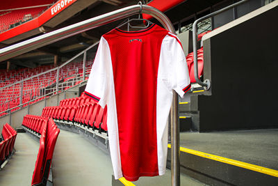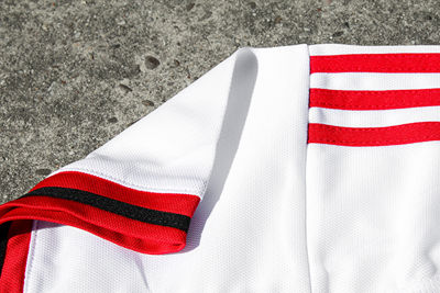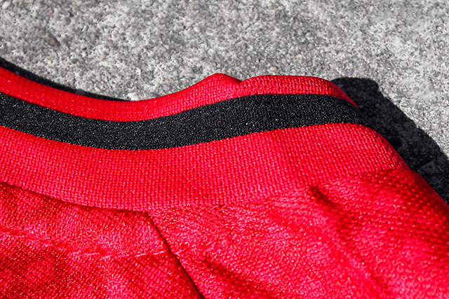 Wie wat langer kijkt naar het shirt, ziet nog een aantal andere zaken. De rode baan is voorzien van een patroon waarin je kruisjes en ruitjes ziet. Verder zien we in de V-hals zwarte details. Deze spotten we ook op de uiteinden van de mouwen. Hierop zitten tevens de welbekende rode Adidasstrepen.