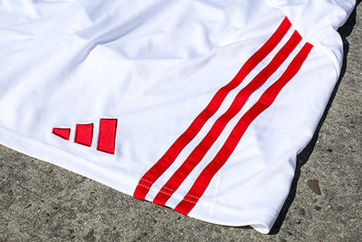 We gaan verder met de rest van het tenue. De witte broek is eveneens voorzien van het klassieke logo. Ook hier zien we rode Adidasstrepen, maar geen sterren. De strepen keren ook terug op de kousen in plaats van een geheel rode omslag.