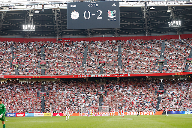 Dat had ook veel te maken met het erbarmelijke spel van de Ajacieden. Was het stress? Was het spanning? Onkunde? Toen de 0-3 viel, verlieten heel veel supporters het stadion. Anderen zetten juist aan om de ploeg nog één keer een hart onder de riem te steken. Ajax heeft het immers – nog steeds – in eigen hand.