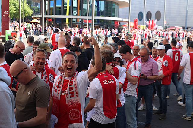 Van dikke euforie eerder op de dag naar diep chagrijn en ontgoocheling aan het einde van de dag. Iedereen hield zich aan de dresscode door massaal wit-rood-witte shirts te dragen. Toch leek de uitslag in De Kuip hard door te werken in de Johan Cruijff Arena. De sfeer was wederom lastig.