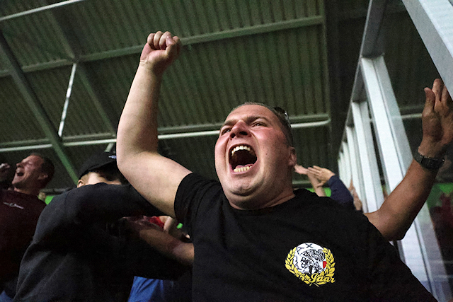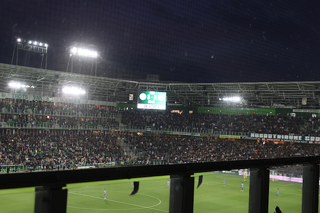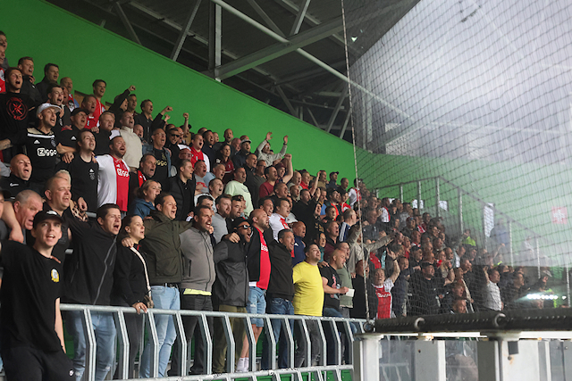 De sfeer in de Euroborg was vanaf de warming-up al elektrisch. Ajacieden in het uitverkochte uitvak vuurden hun ploeg massaal aan, terwijl in alles duidelijk werd dat FC Groningen de titelstrijd maar wat graag op z’n kop wilde zetten.