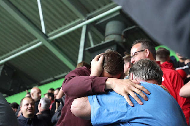 Een mokerslag, die keihard aankomt. En gigantisch veel pijn doet. Ongeloof. Frustratie. Teleurstelling. Al die emoties vochten om voorrang, terwijl in de Euroborg een doldwaas volksfeest losbarstte. Alsof FC Groningen zojuist zelf kampioen was geworden.