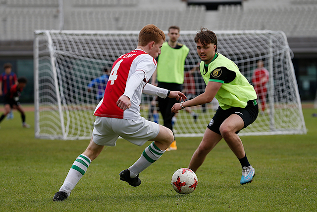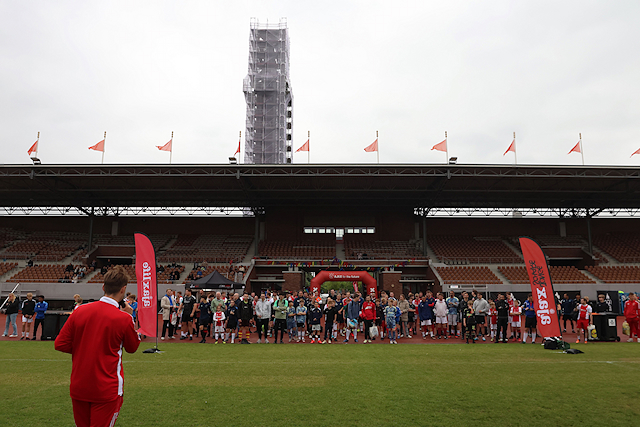 Het Olympisch Stadion was 's ochtends nog het terrein van een Ajax Kids Tour, maar 's middags was het weer hoog tijd voor het SV Ajax Voetbaltoernooi. Het is traditie om na afloop van het seizoen op een toffe plek te voetballen. Dat lukte wederom!