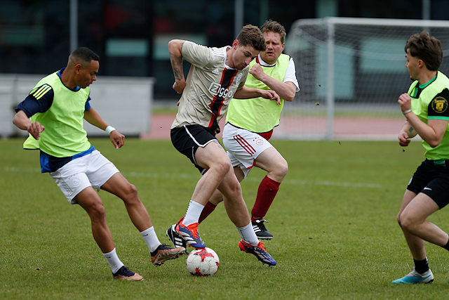 Op de plek waar onze club onvergetelijke successen boekte, trapten nu onze leden van Ajax Life en Ajax Jonge Schare tegen een balletje. We zagen een bonte verzameling aan Ajaxshirtjes. Vrienden en vriendinnen, maar ook vaders en zonen deden gebroederlijk mee. En wat zagen we een hoop fraaie hoogstandjes!