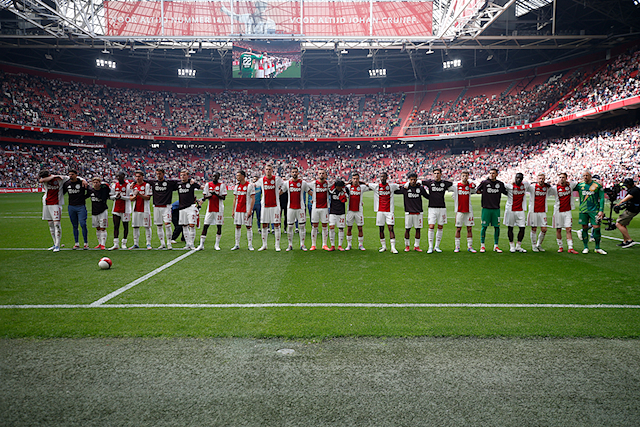 Het seizoen zit erop. En wat voor eentje. Op de slotdag won Ajax met 2-0 van FC Twente. Het was niet meer genoeg voor de titel. Toch heerste er een sfeer van dankbaarheid in de Johan Cruijff Arena. We maakten foto’s.