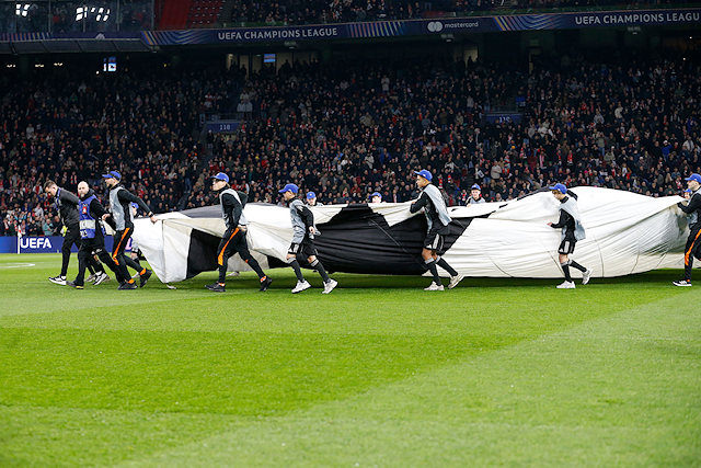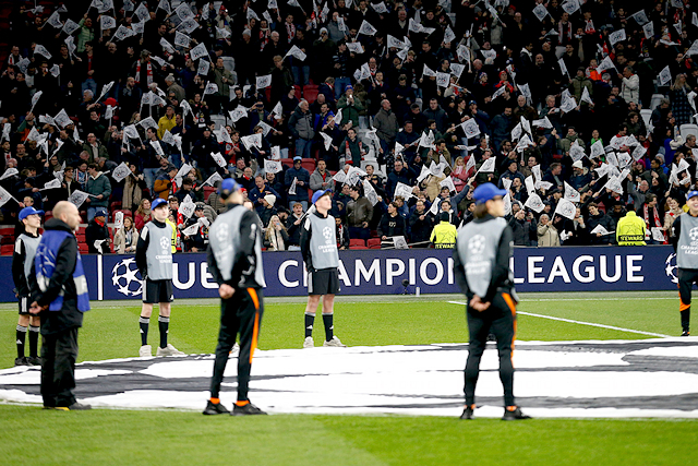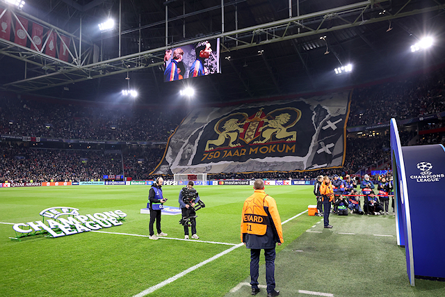 Allereerst werd aan de zuidkant van het stadion weer een magistraal en gigantisch doek ontrold, waarmee 750 jaar Mokum werd geëerd. We zagen het stadslogo van Amsterdam en de kenmerkende grote oren van de Champions Leaguebeker. Ongekend vakwerk van de fanatieke aanhang. Buiten de lijnen is Ajax nog wel van topniveau.