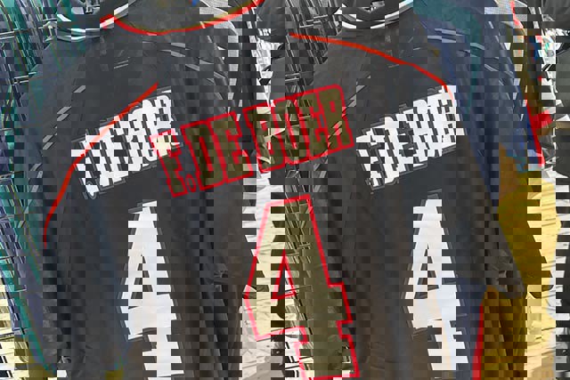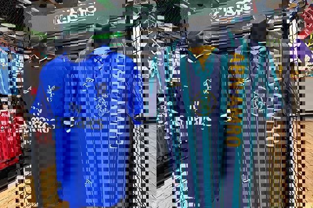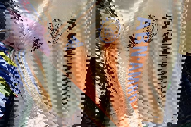 Terwijl we lachen over de wijde mouwen van Ajaxshirts uit de jaren negentig, legt Sam uit dat ze experts laten testen of shirts die hen worden aangeboden ook daadwerkelijk authentiek zijn. “Shirts uit die tijd hebben specifieke kenmerken die lastig na te maken zijn en waaruit je kunt opmaken of iets echt is of niet.”