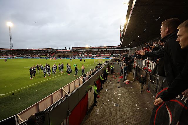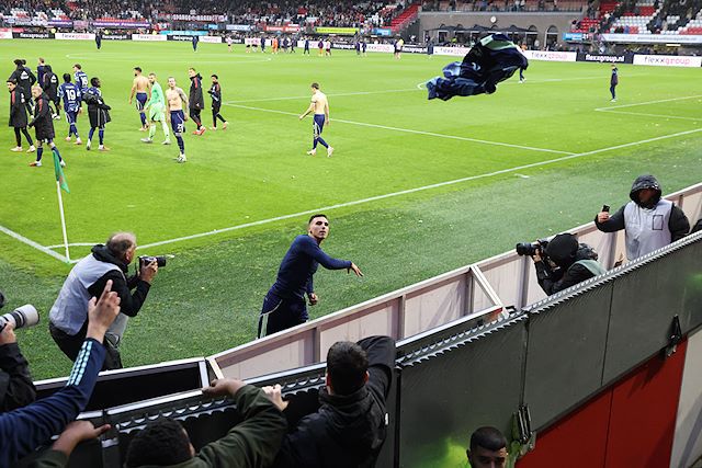 Witte zakdoekjes zagen we ook hier en daar. Ajaxsupporters zijn murw geslagen. Velen hebben hun buik vol van de op het oog doodlopende weg die Ajax bewandelt. Dat Oscar Gloukh ver in blessuretijd de 3-3 in de netten schoot, was een rafelige pleister op de wonde. Het regende de hele dag tranen van Ajacieden. Bij het bedanken van het uitvak was de frustratie bij veel supporters goed hoorbaar: ‘Voetballen, voetballen, voetballen!’