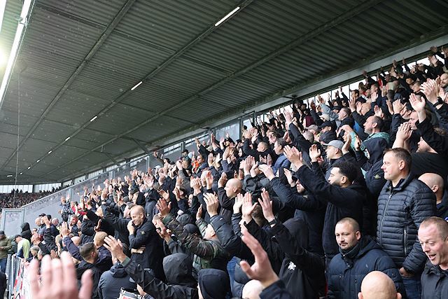 Vanaf het eerste fluitsignaal stonden de Ajaxsupporters vol achter hun ploeg. Dat was echt mooi om te zien. De sfeer sloeg behoorlijk om toen Ajax op een 3-1-achterstand kwam. Het ‘Wij willen Ajax zien’ en ‘Schaam je kapot’ klonk uit alle kelen. Bij de Ajaxdirectie op de tribune zagen we zorgelijke blikken.