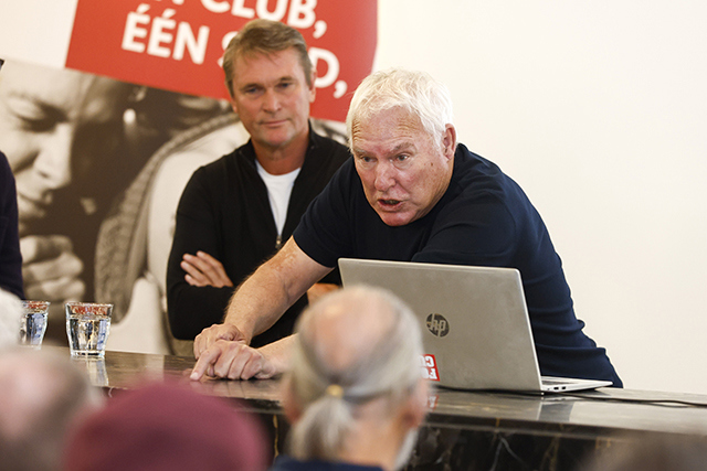 Een volle zaal hing aan de lippen van de voormalige spits en de rechterhand van Louis van Gaal. Het duo, samen goed voor alle grote trofeeën in een tijdsbestek van acht jaar, strooide met anekdotes.