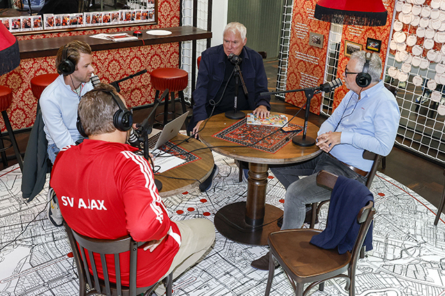In de voormiddag schoof Van der Lem eveneens aan voor onze wekelijkse Ajax Life Podcast, waarvan de opname deze keer plaatsvond op een toepasselijke plek: het tijdelijke Ajaxcafé in de tentoonstellingsruimte.