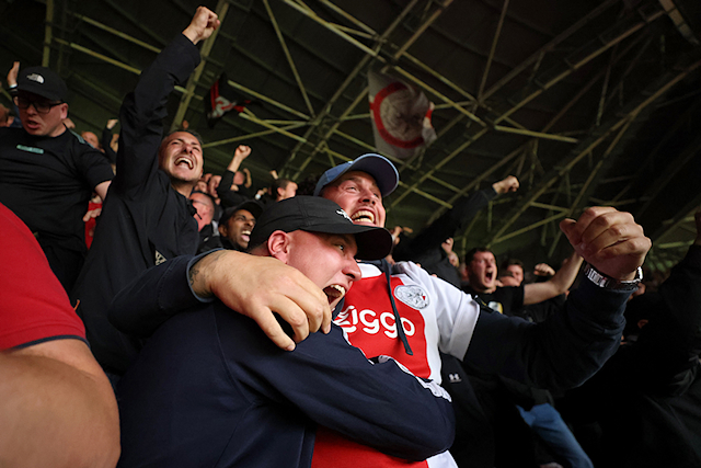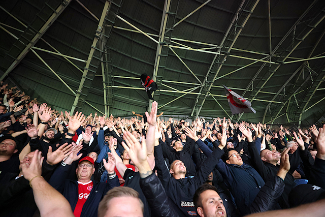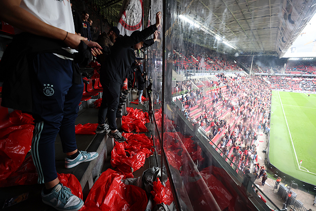 Zo’n veertienhonderd Ajaxsupporters arriveerden al tussen 11.00 uur en 12.00 uur bij de Johan Cruijff Arena voor een treinrit naar Eindhoven. Ook vanuit Den Bosch vertrokken er bussen met tweehonderd Ajacieden aan boord. Eenmaal in het Philips Stadion stond zestienhonderd man sterk achter Ajax.