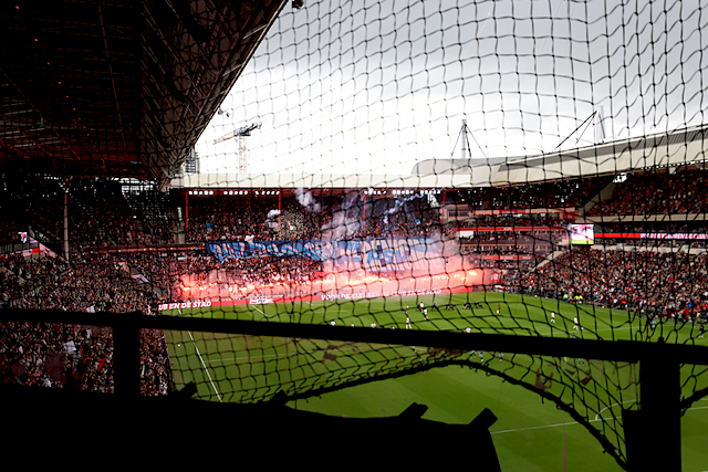 Na een mooie tifo-actie van de Ajaxaanhang en het nodige vuurwerk vanuit de PSV-fans, kon de wedstrijd beginnen. Ajax had een halfuur lang niks in de melk te brokkelen en stond al na zeven minuten achter. Zou het zo’n dag worden? Gelukkig liep het anders. Kenneth Taylor schoot na 31 minuten spelen raak vanaf de stip. Dat was een kantelpunt.