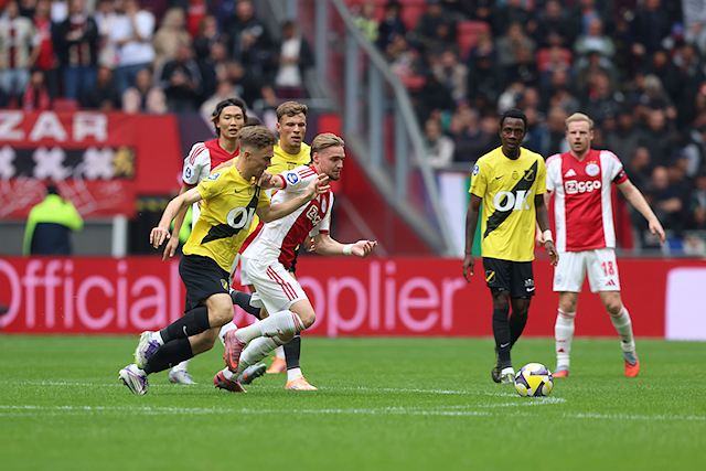 Het heeft weinig zin nog veel woorden vuil te maken aan de prestatie van Ajax tegen NAC. Het is dat de ploeg van John Heitinga zowel in de eerste als tweede helft uit de startblokken schoot met snelle treffers van Oscar Gloukh en Kenneth Taylor, maar daarna daalde het spel snel naar een zeer bedenkelijk niveau.