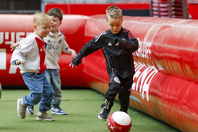 Terwijl de kinderen hun ogen uitkeken, werd het ene na het andere paaseitje gevonden. Toen alle paaseitjes waren ontdekt, was het tijd voor een potje voetbal. Een speurtocht in de Johan Cruijff Arena is leuk, maar voetballen in het Ajaxstadion is natuurlijk ook bijzonder!