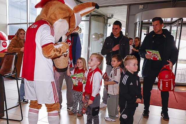 Lucky gaf leden van de Ajax Kids Club een rondleiding door de Johan Cruijff Arena. Alle toffe plekjes werden bezocht. Denk bijvoorbeeld aan de kleedkamers, de perszaal en de spelerstunnel. De vrolijke lynx verstopte overal paaseitjes. Aan de winnaartjes die te vinden!