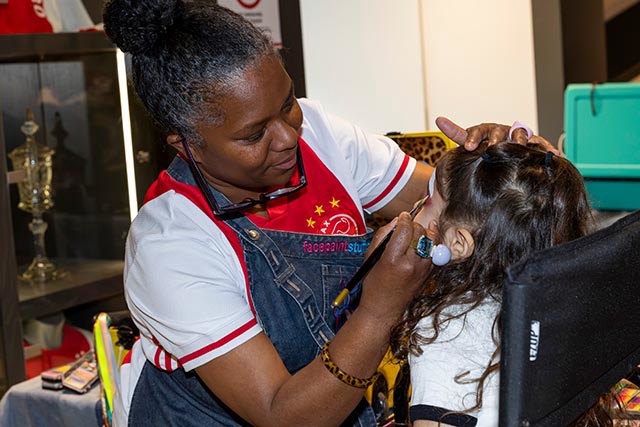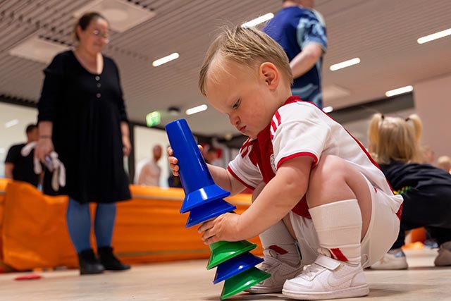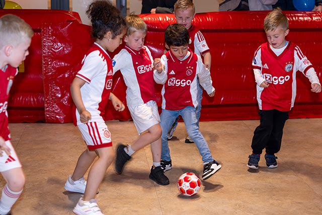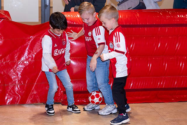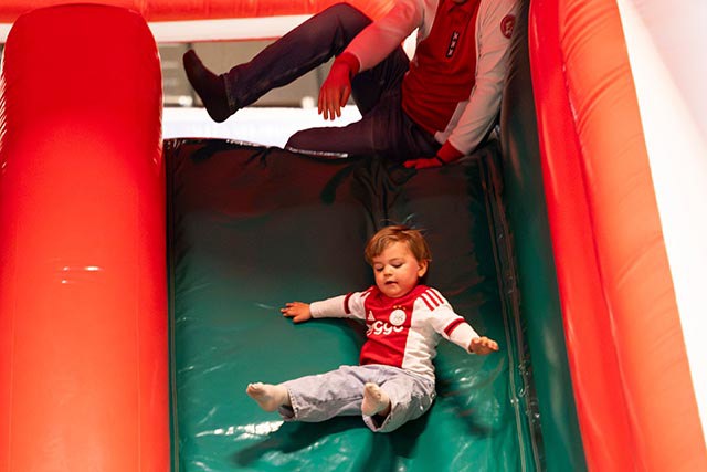 Baby’s, Debutantjes en Dribbelaartjes krioelden en stuiterden heerlijk door elkaar heen. Ze waren in de Johan Cruijff Arena om leuke voetbalactiviteiten te doen. Zo kon je worden geschminkt als Lucky, lekker losgaan op het springkussen of meedoen aan Voetjebal.