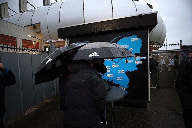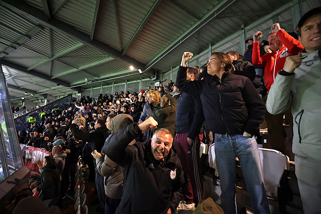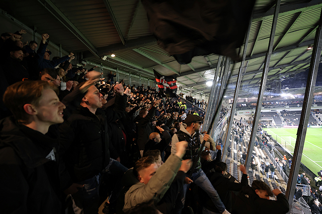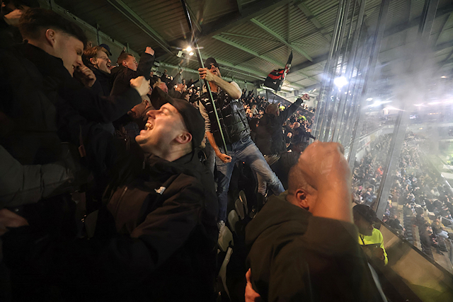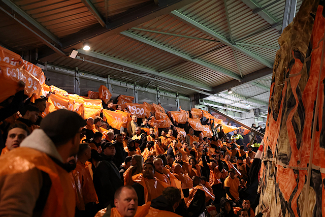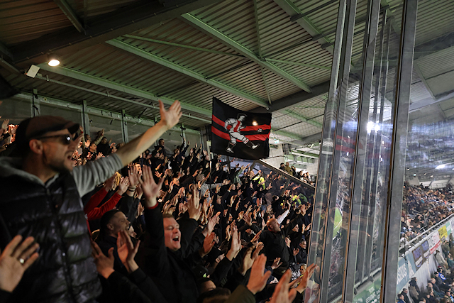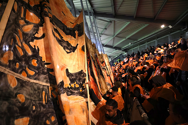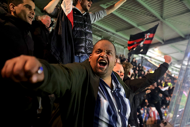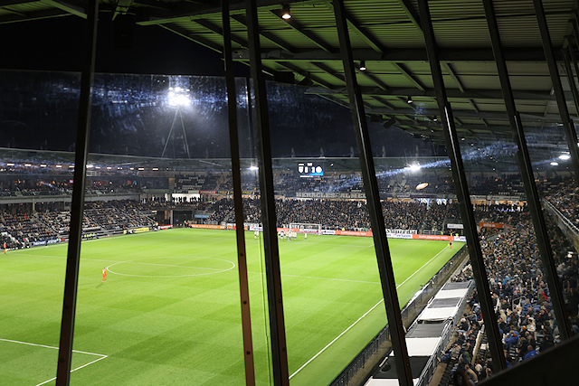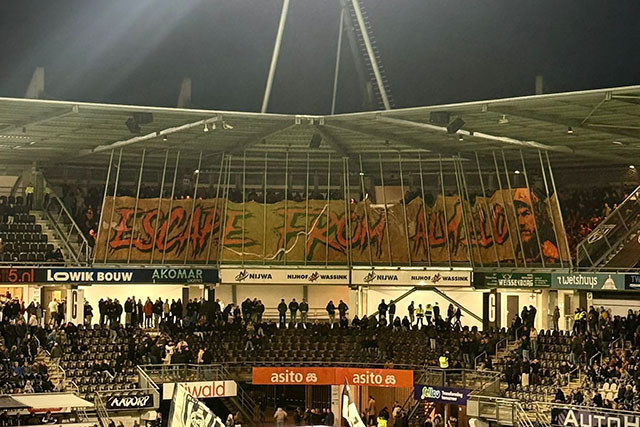 Dat was een verwijzing naar de verbouwing van het uitvak in het Asito Stadion, dat tegenwoordig meer weg heeft van een gevangenis. Vanuit die gevangenis zagen supporters hoe Mika Godts en tweemaal Steven Berghuis hun ploeg naar een broodnodige zege schoten.