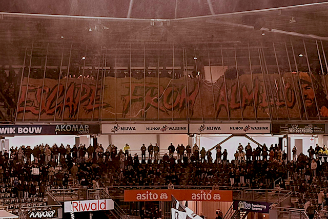 Nadat we dit seizoen aardig murw zijn gebeukt, konden we die humor wel waarderen. Net als het grote spandoek dat voorafgaand aan de wedstrijd ontrolde, met daarop de tekst ‘Escape from Almelo’.