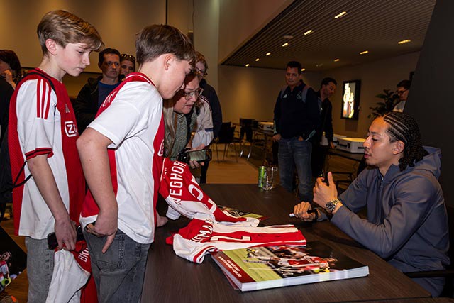 Er werden flink wat potjes gespeeld. De vonken vlogen er werkelijk vanaf. De winnaar ging er vandoor met een mooie Ajaxprijs. Vet! Nog gaver was dat Ajax Jonge Schare Ambassadeur Fitz-Jim langskwam. Voor handtekeningen en selfies, maar ook om een potje te spelen tegen de winnaar.