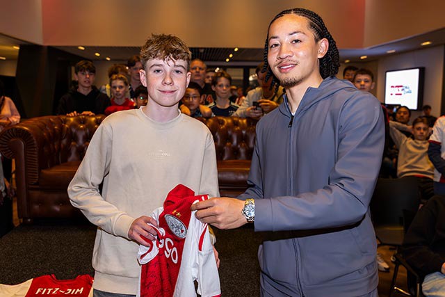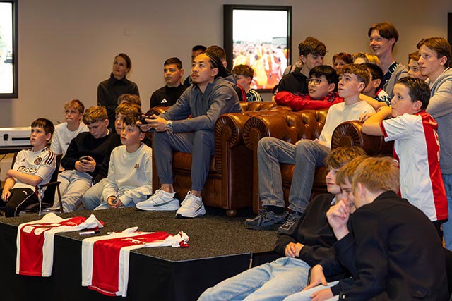 De Johan Cruijff Arena vormde maandag het strijdtoneel voor ons Ajax Jonge Schare EA Sports FC-toernooi. Met Kian Fitz-Jim als speciale gast werd het een toffe dag. Bekijk de foto’s maar!