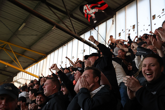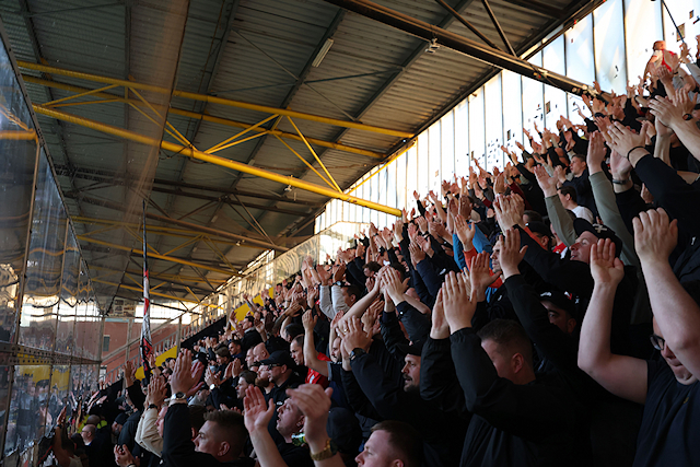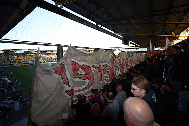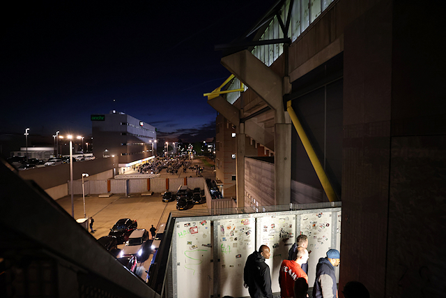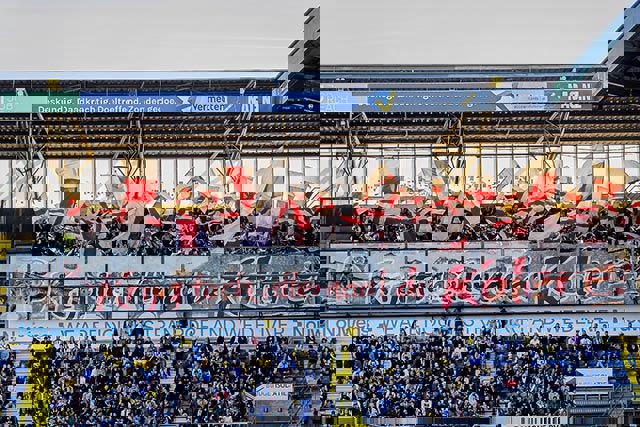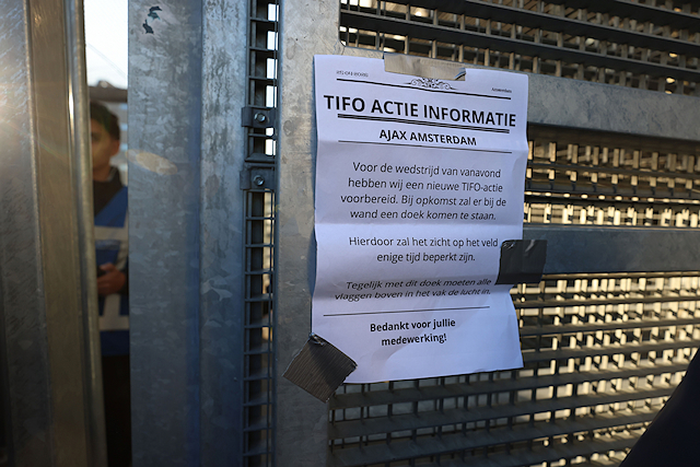 Dit bleek uit een tekst op de muur bij het bezoekersvak: “Drie sterren is veel. Die krijgt ons uitvak niet. Onze excuses hiervoor. We streven ernaar jullie snel in een mooier uitvak te mogen ontvangen. Je legde maar liefst honderd kilometer af om hier te komen. Laten we er samen een mooi voetbalfeest van maken. Fijne wedstrijd!”