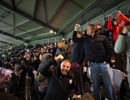 Er zijn na de wedstrijd geen wegwerpgebaren of boos naar binnen lopende spelers, maar we staan even stil om elkaar te bedanken. Zij ons voor de steun, zowel visueel als vocaal. Wij danken hun voor de drie punten. Als de spelers de warme en droge kleedkamer opzoeken, dringen we de trappen af.