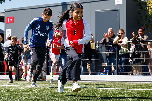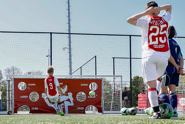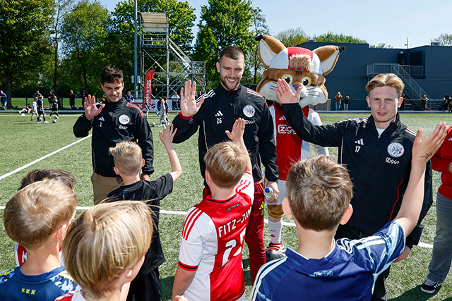 Op het trainingscomplex van Ajax werd het een heerlijke voetbaldag vol spelletjes. De zon scheen volop. Natuurlijk was mascotte Lucky van de partij om een balletje mee te trappen en high-fives uit te delen.