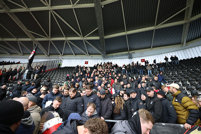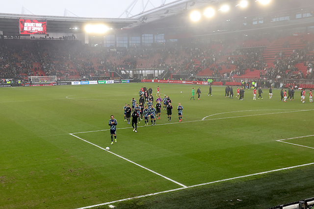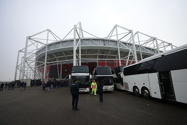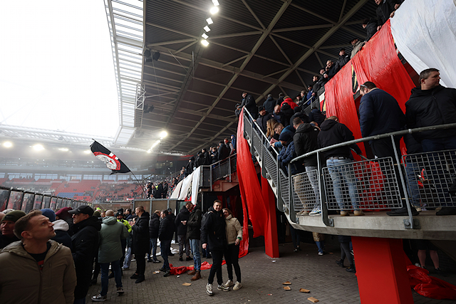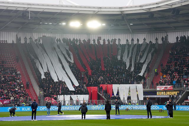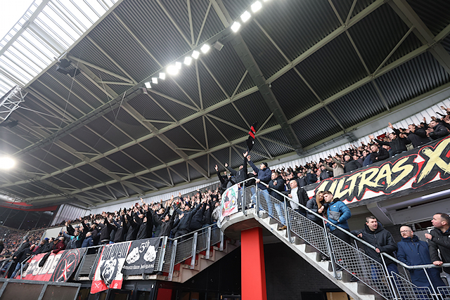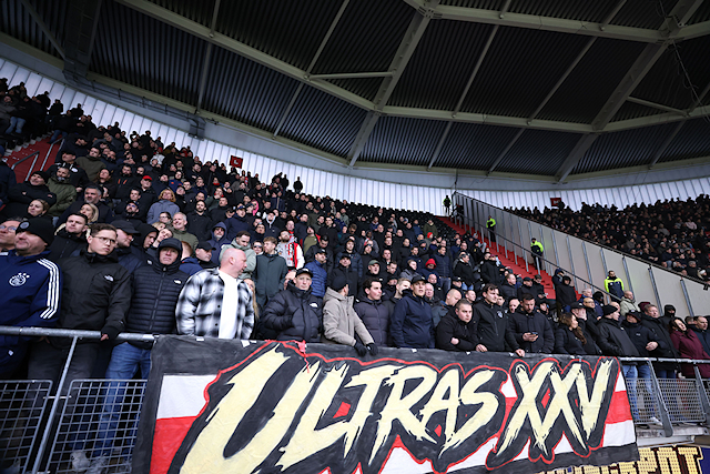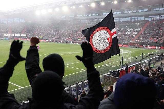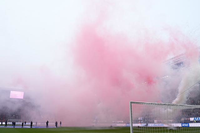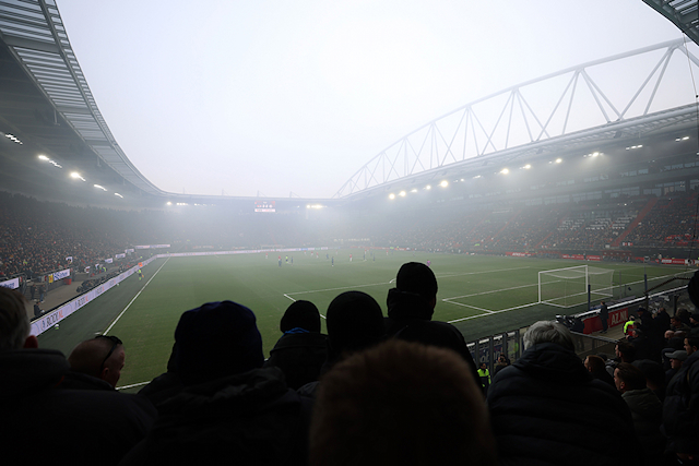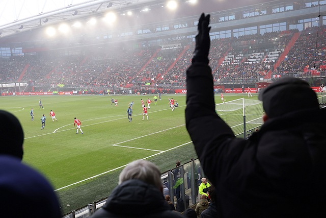 We zagen in beginsel sowieso vrij weinig door het georganiseerde vuurwerk. Het Afas Stadion kwam in een deken van rode mist te liggen. Daardoor begon de wedstrijd later. Na rust – toen Ajax alweer snel op achterstand kwam – trokken ook normale mistwolkjes door het stadion.