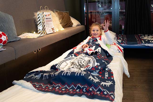 Ze hadden allemaal hun slaapspulletjes mee, want ze mochten blijven slapen in skyboxen die waren omgetoverd tot echte Ajaxslaapkamers. Slapen onder een gepersonaliseerd Ajaxdekbed in het Ajaxstadion. Dat is toch een droom die uitkomt?