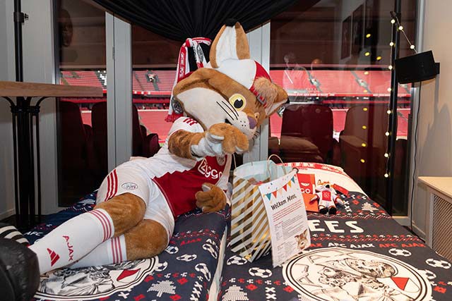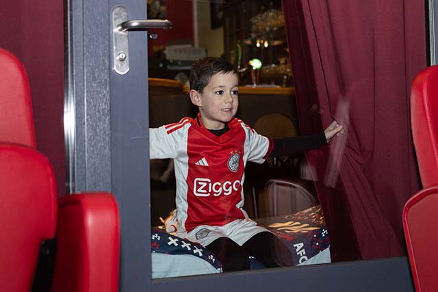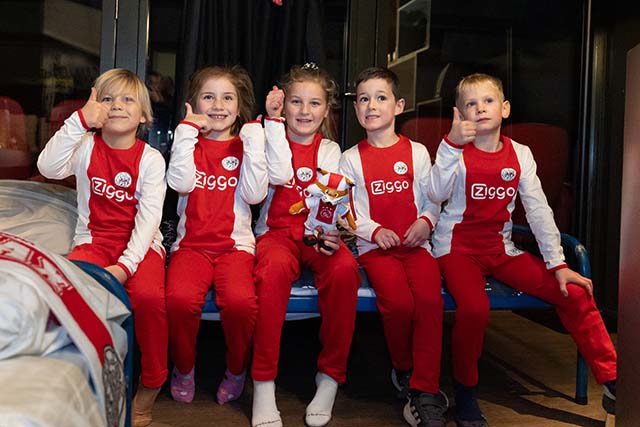 Lucky zorgde bovendien voor echte wit-rood-witte Ajaxpyjama’s. De kinderen kregen, behalve een mooi cadeautasje, een uitgebreide rondleiding door het stadion en kwamen op plekken die voor anderen gesloten blijven.