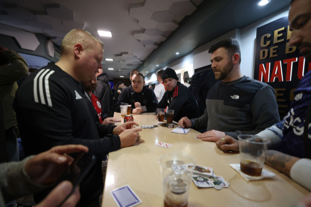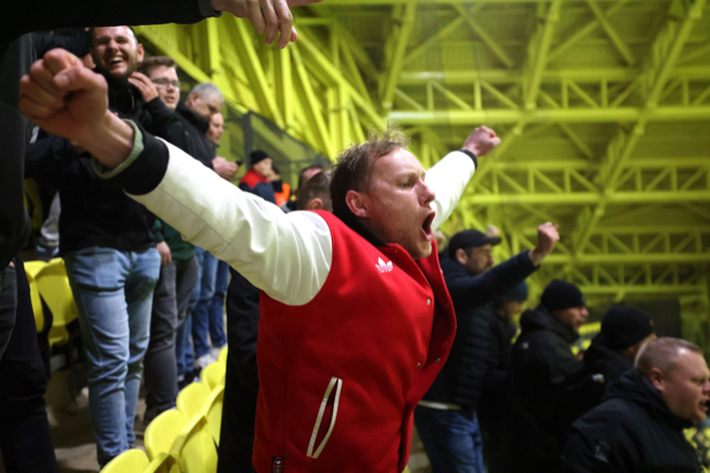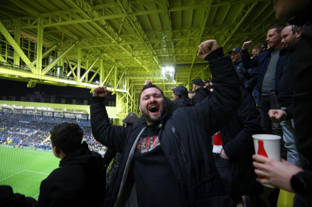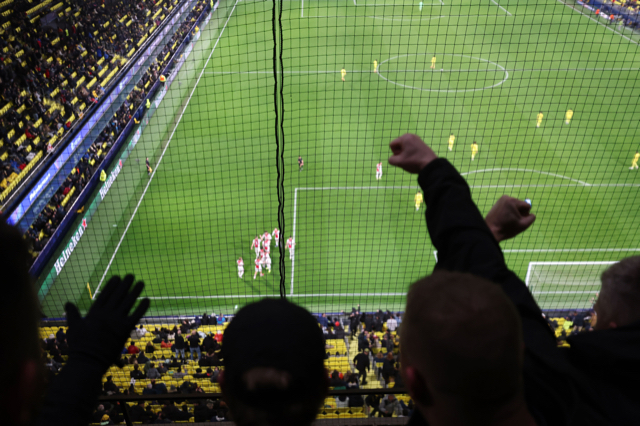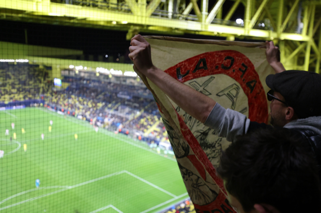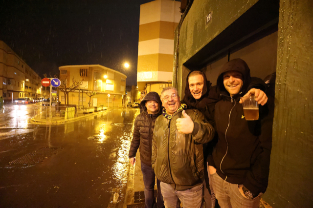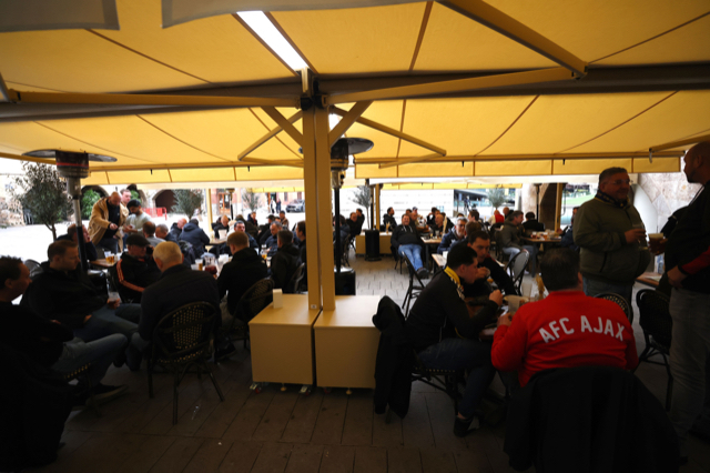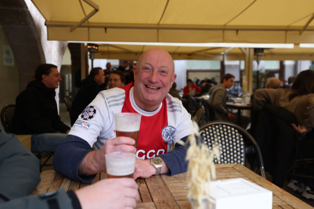 Natuurlijk miste De Brouwer niks van de actie op de tribune en liet hij zijn camera volop flitsen. Dat levert deze plaatjes op. Het zijn foto’s van hoe Ajacieden de wedstrijddag beleefden in slaapstadje Vila-real om uiteindelijk juichend het stadion te verlaten.