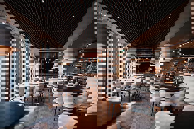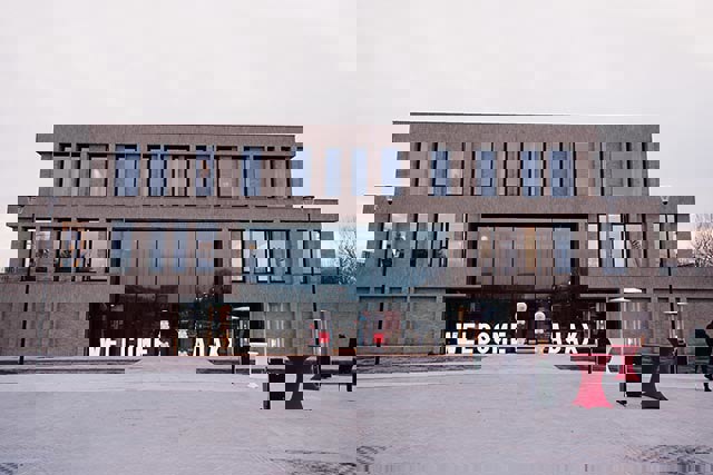 Het nieuwe hoofdgebouw oogt van buiten stenig, maar is van binnen heel licht en ruimtelijk. Door grote raampartijen zijn er prachtige zichtlijnen op alle velden. Daardoor voelen spelers van het eerste dat ze niet een ploeg op zich zijn, maar onderdeel van iets veel groters. Alles ademt voetbal.