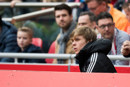 Begeleider vlagwapperaars bekijkt Ajax - Liverpool thuis met Lucky